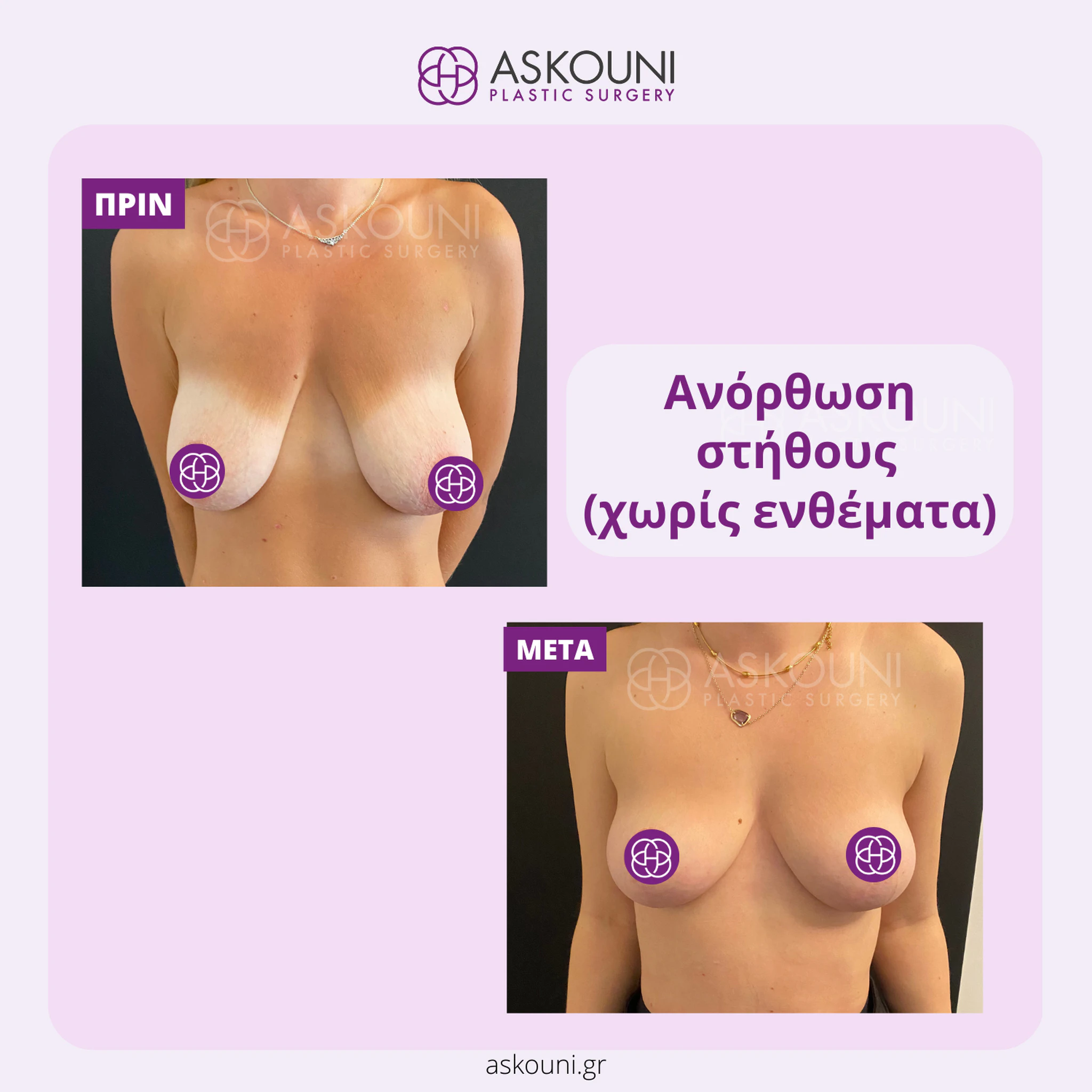 - One breast may sit lower than the other, requiring a lift to improve symmetry.